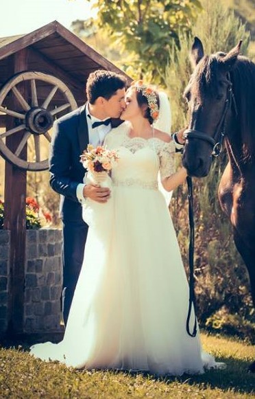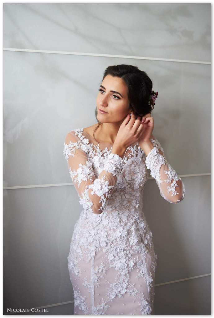 Această rochie de mireasă este realizata din tulle și dantelă Chantilly lucrată manual. Rochia este accesorizată cu brâu și mănuși lucrate manual. Modelul acesta de rochie a fost lansat de atelierul nostru în 2016 și poate fi realizat personalizat după comandă.