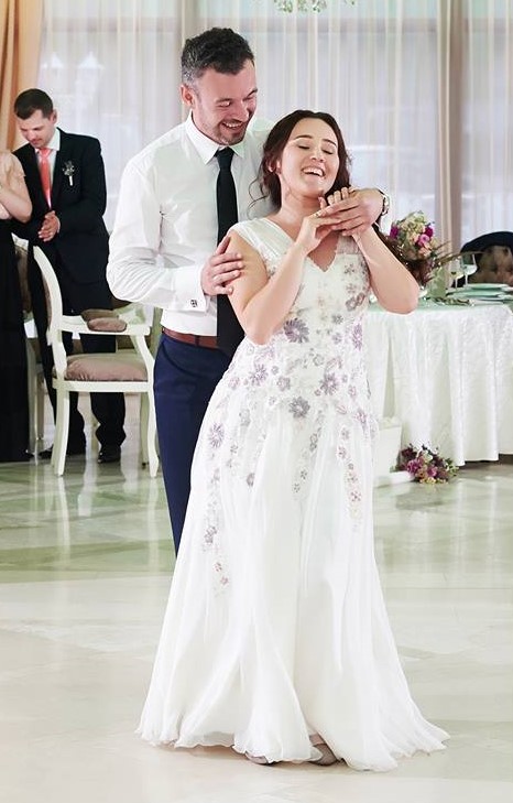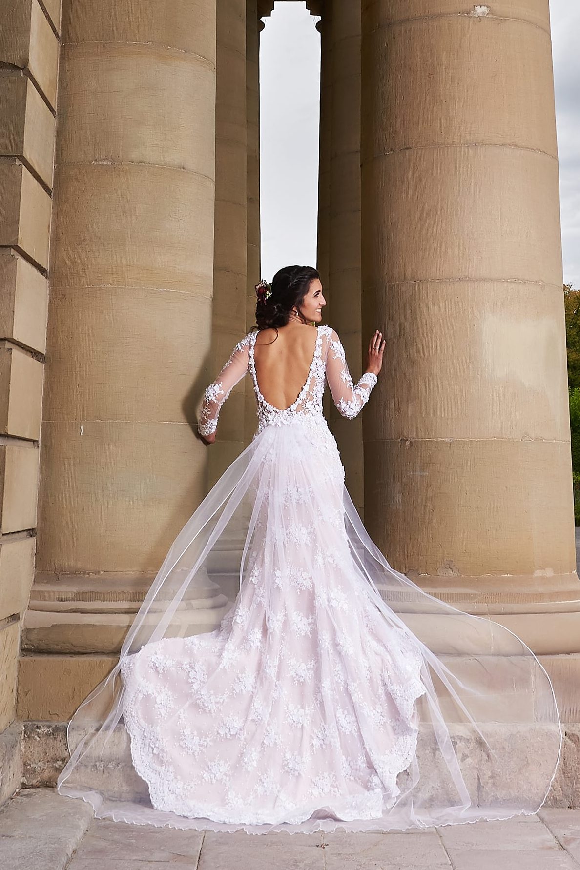Decolteul spatelui este lucrat manual iar trena din tulle este detașabilă. Rochia de mireasă din imagini face parte din portofoliul nostru și a fost realizată personalizat în 2018 pentru o mireasă deosebită din Würzburg, Germania.