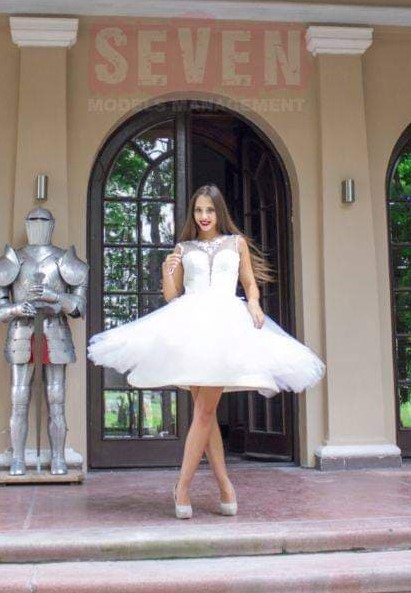 Această rochie de mireasă scurtă este confecționată din voal și tafta satinată ușor elastică pentru mai mult confort. Rochia a fost creată de atelierul nostru în 2023 pentru a aduce mai mult NOROC unei mirese care a avut nunta în Las Vegas. Modelul acesta de rochie poate fi realizat personalizat după comandă.