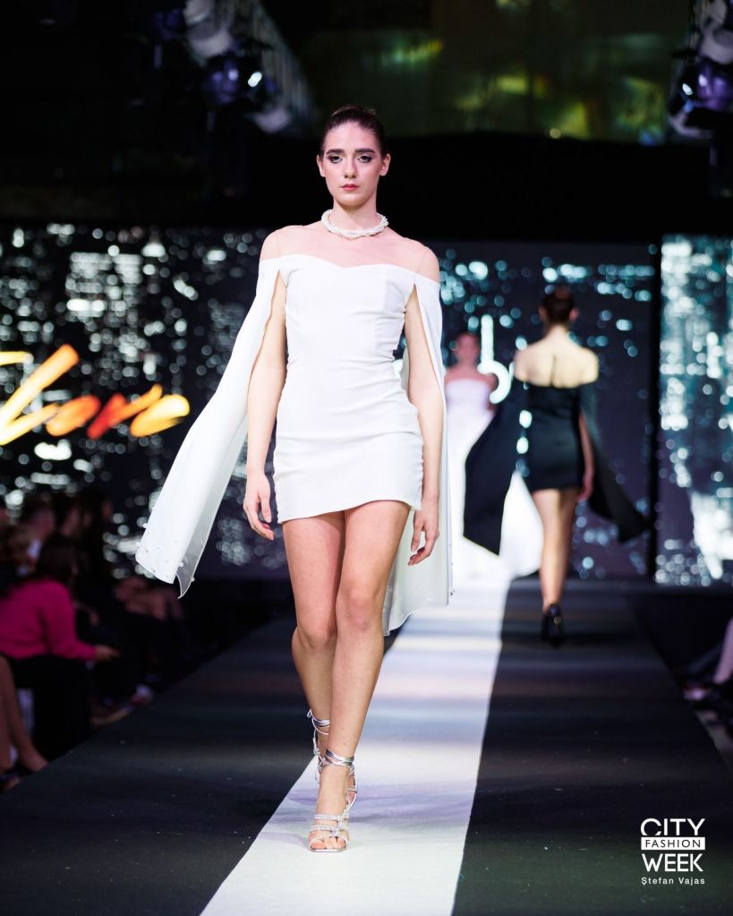 Rochia este realizată din tafta satinată și este decorată cu perle. Rochia face parte din colecția ”Yin and Yang” 2024 și este disponibilă în stoc.
