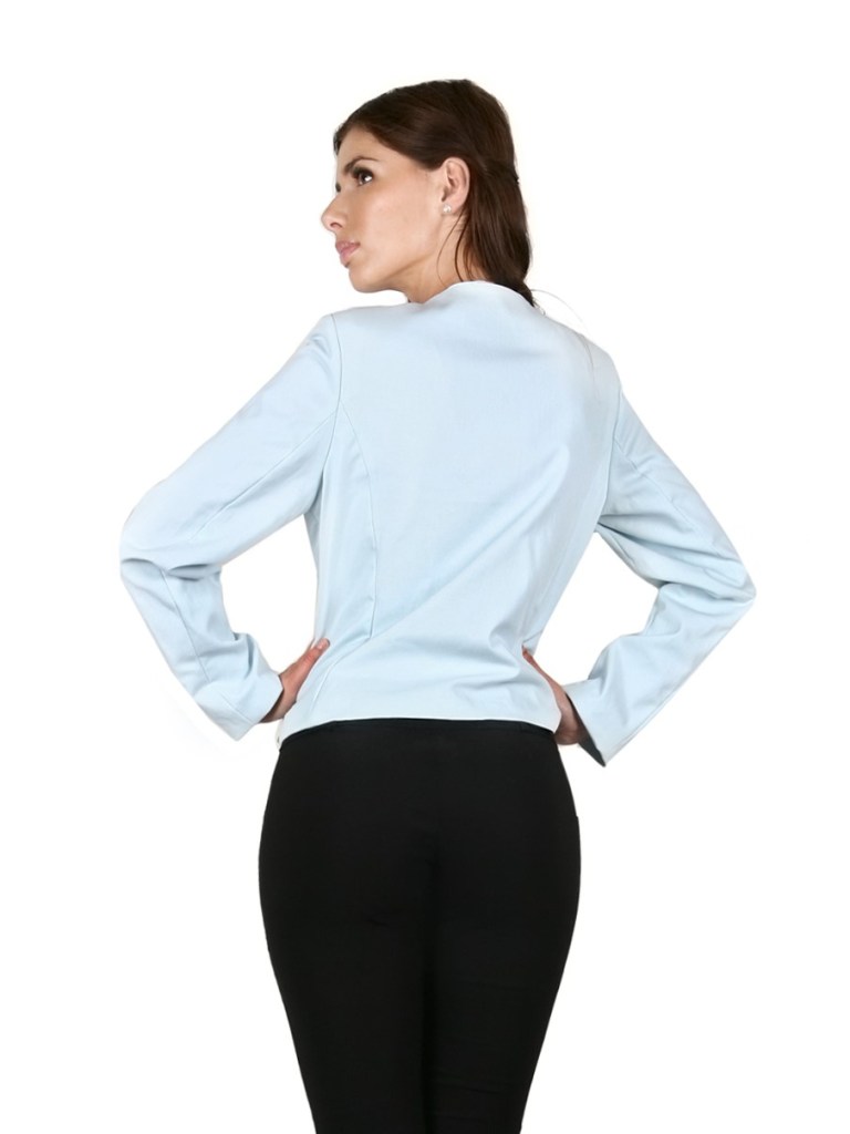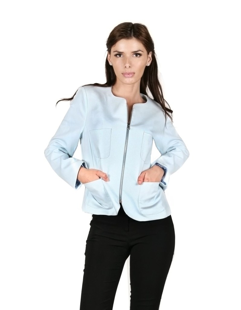 Jachetă de primăvară din stofă blue ciel cu fermoar.