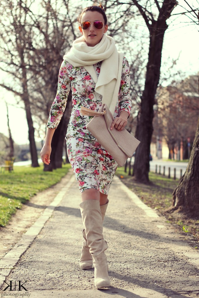 Fusta cu imprimeu floral este realizată din bumbac satinat.